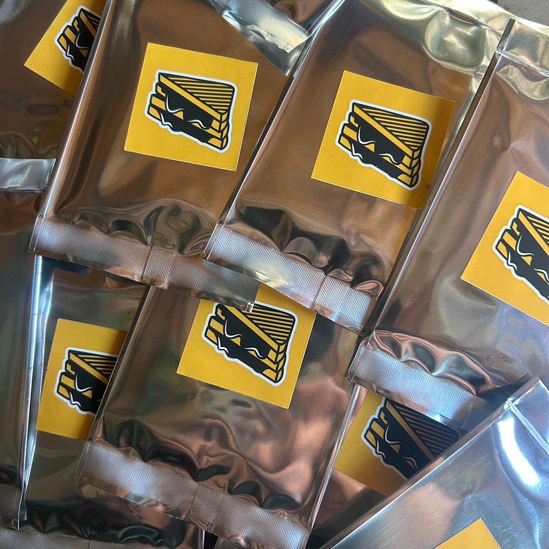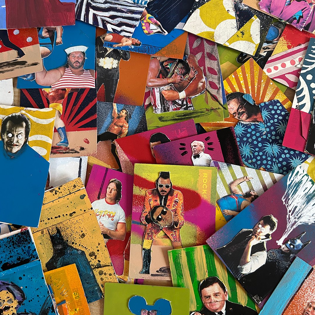 I love making peculiar trading cards through the use of paint, collage and stacks of 'vintage' trading cards. I've started packaging these beasts up in their own foil packs. Each pack contains 3 original trading card artworks and a bad sandwich sticker. I have grand plans for more of these artworks as they're super fun to create and I bought the foil pack sealer, so need to put it to good use.